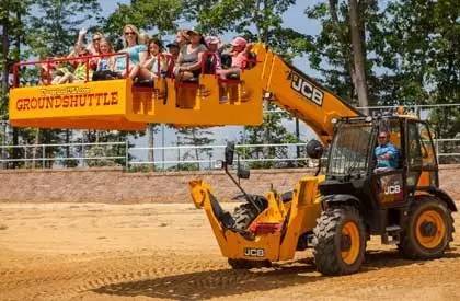 Diggerland主(zhu)題樂園目(mu)前(qian)的(de)遊玩項(xiang)目(mu)有(yǒu)駕駛JCB兩頭忙,乘坐(zuò)地面巴士(用(yong)JCB伸縮臂叉裝(zhuang)車(che)540-140改裝(zhuang),有(yǒu)15箇(ge)座位),乘坐(zuò)空中(zhong)專(zhuan)列(用(yong)JCB伸縮臂叉裝(zhuang)車(che)540-180改裝(zhuang),可(kě)升高(gao)至18米)等(deng)特色項(xiang)目(mu)。
